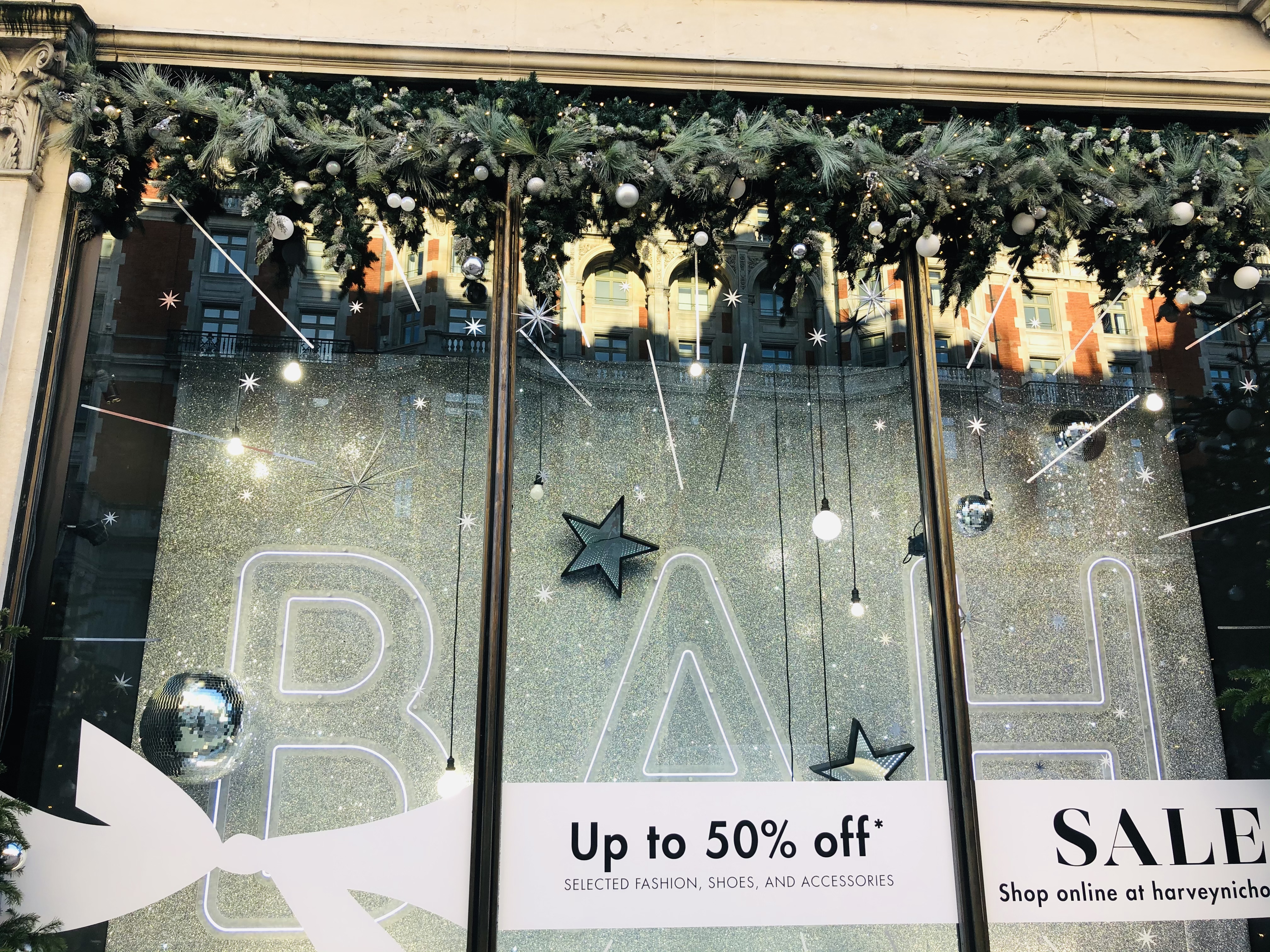 装饰一新的商场,大门紧闭。显眼的是打折广告。