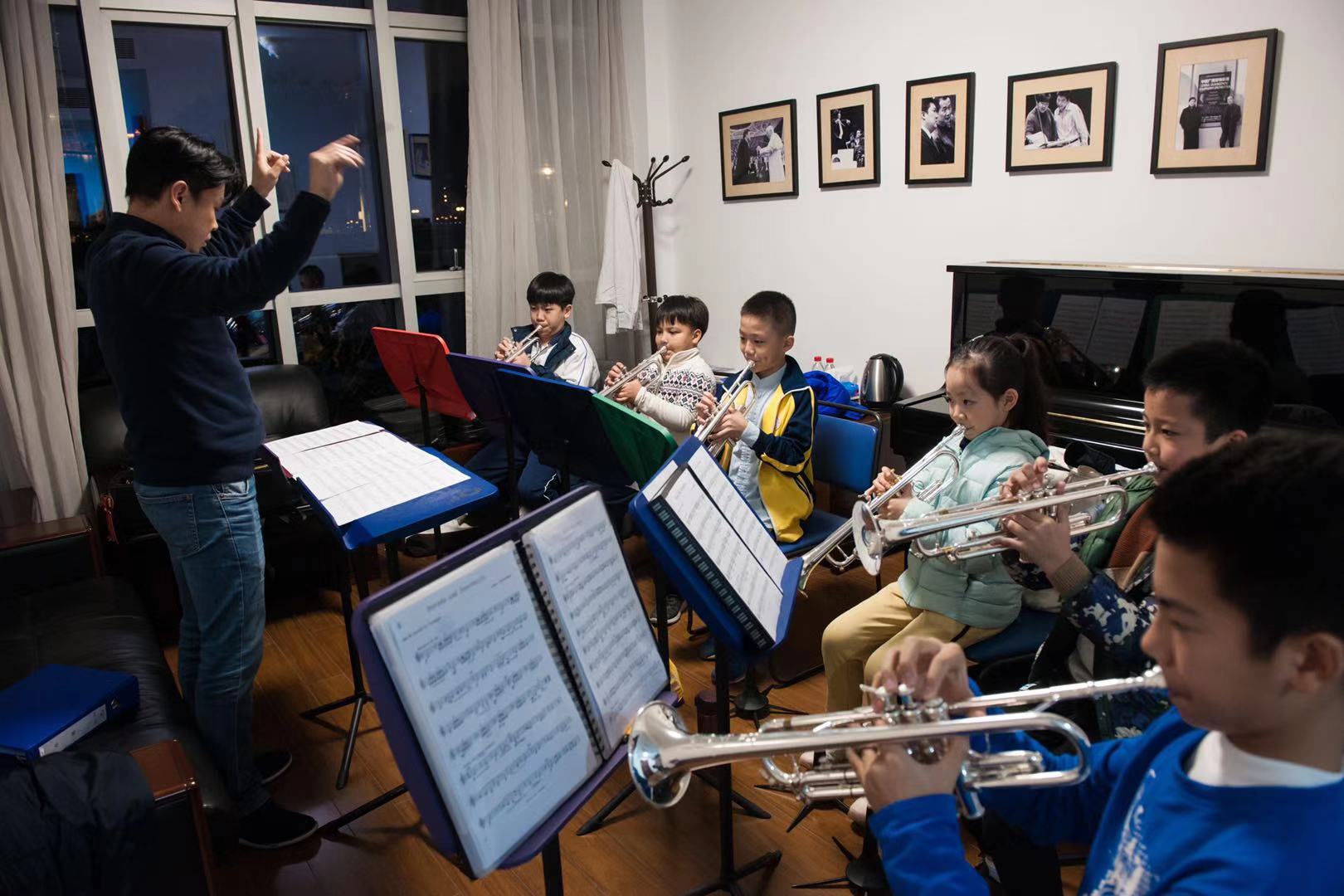 基础班自2019年3月8日正式开班至今,每周两晚的课程以及寒暑假的集训,学生出勤率一直保持在95%以上,大家都很珍惜这难得的学习机会。水荫路小学三年级学生吴彦齐除了每周一和周四晚上来广交上课外,每晚8时都雷打不动开始练习小号。他的妈妈说:“学乐器是促使他做其他事情的一个动力,因为他要保证每天8点吹小号,所以一回到家就立马吃饭、写作业,一点都不敢拖沓。”
