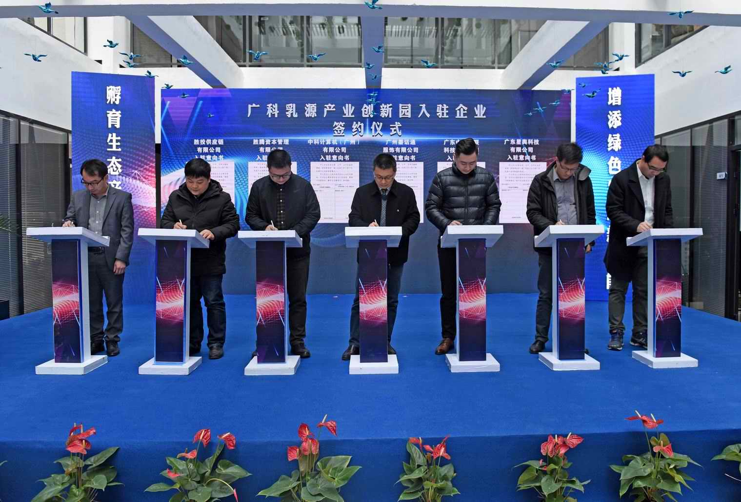 省、市、县各级领导分次为省科学院乳源产业技术服务中心及广科乳源产业创新园揭牌、为10位创业导师颁发了导师聘书、与12家意向进驻企业进行了电子签约。随着三项议程的完成,也代表着广科乳源产业创新园的机构对企业的服务、孵化工作正式全面开展。