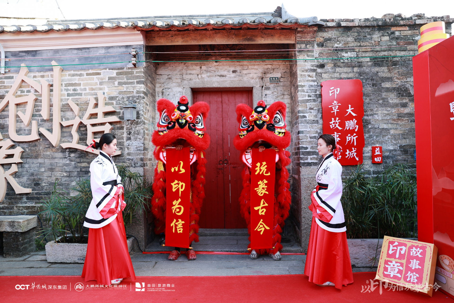 12月24日下午,大鹏所城十字街焕新暨益田印章故事馆开馆仪式在大鹏所城举行。今年8月,华侨城深东集团与益田旅游商业集团股份有限公司(以下简称益田)签署战略框架协议,以商业运营为核心,整合双方优势资源,共同推动所城内部分街区业态高品质开发和运营,“大鹏所城十字街”的业态活化升级是双方首个联合打造的项目。