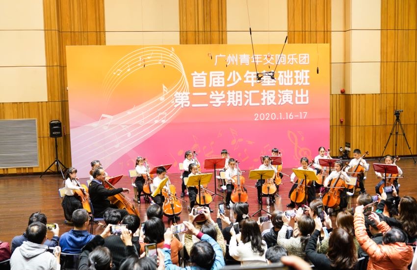 每学期一次的展演,孩子们从“零基础”到现在可以视谱演奏完整管弦乐曲,进步的速度大大超过了老师们的预期。2020年1月底,著名大提琴家马友友亲临少年基础班展演现场,除了为孩子们打气,更现身大提琴重奏组里,与孩子们一起演奏音乐。