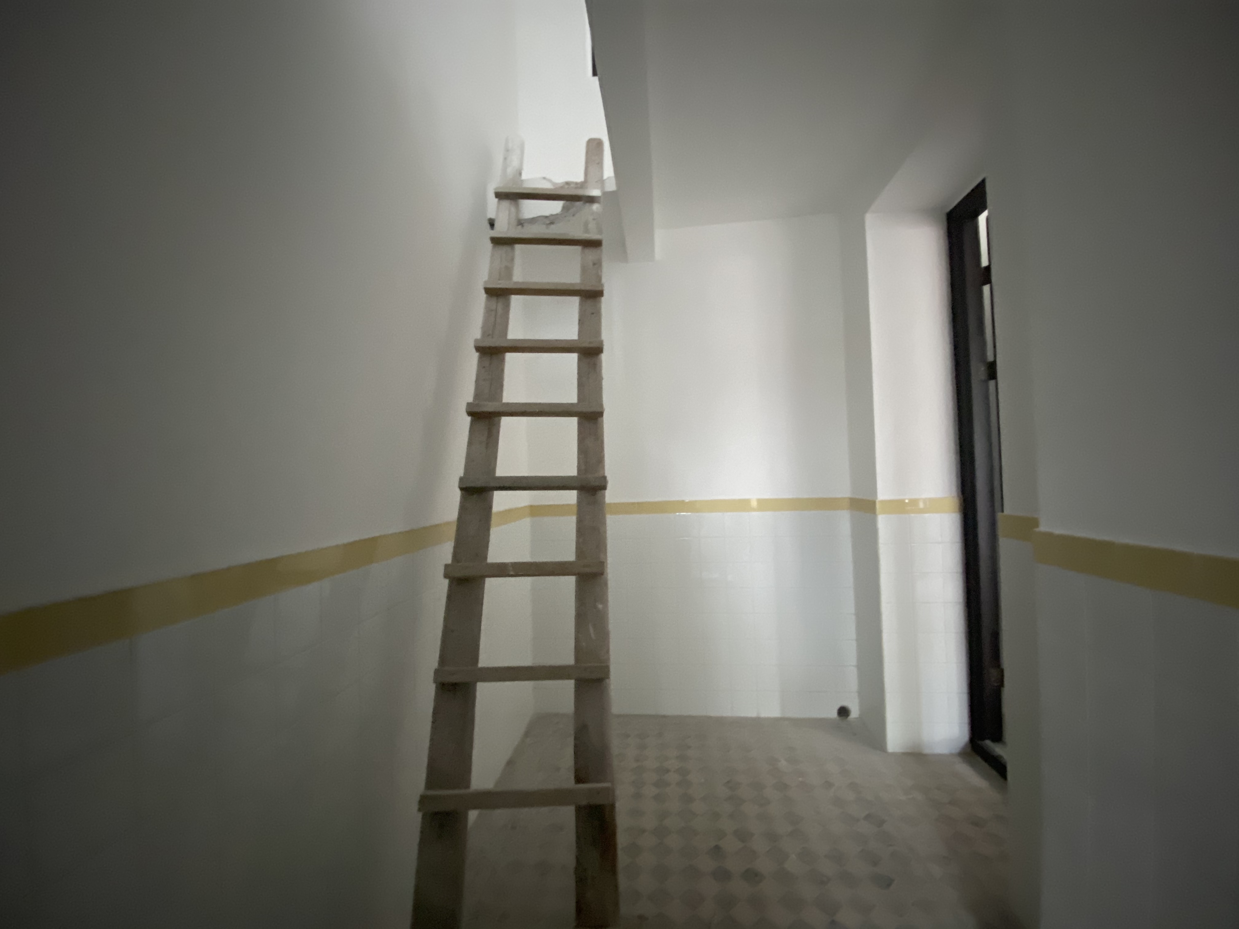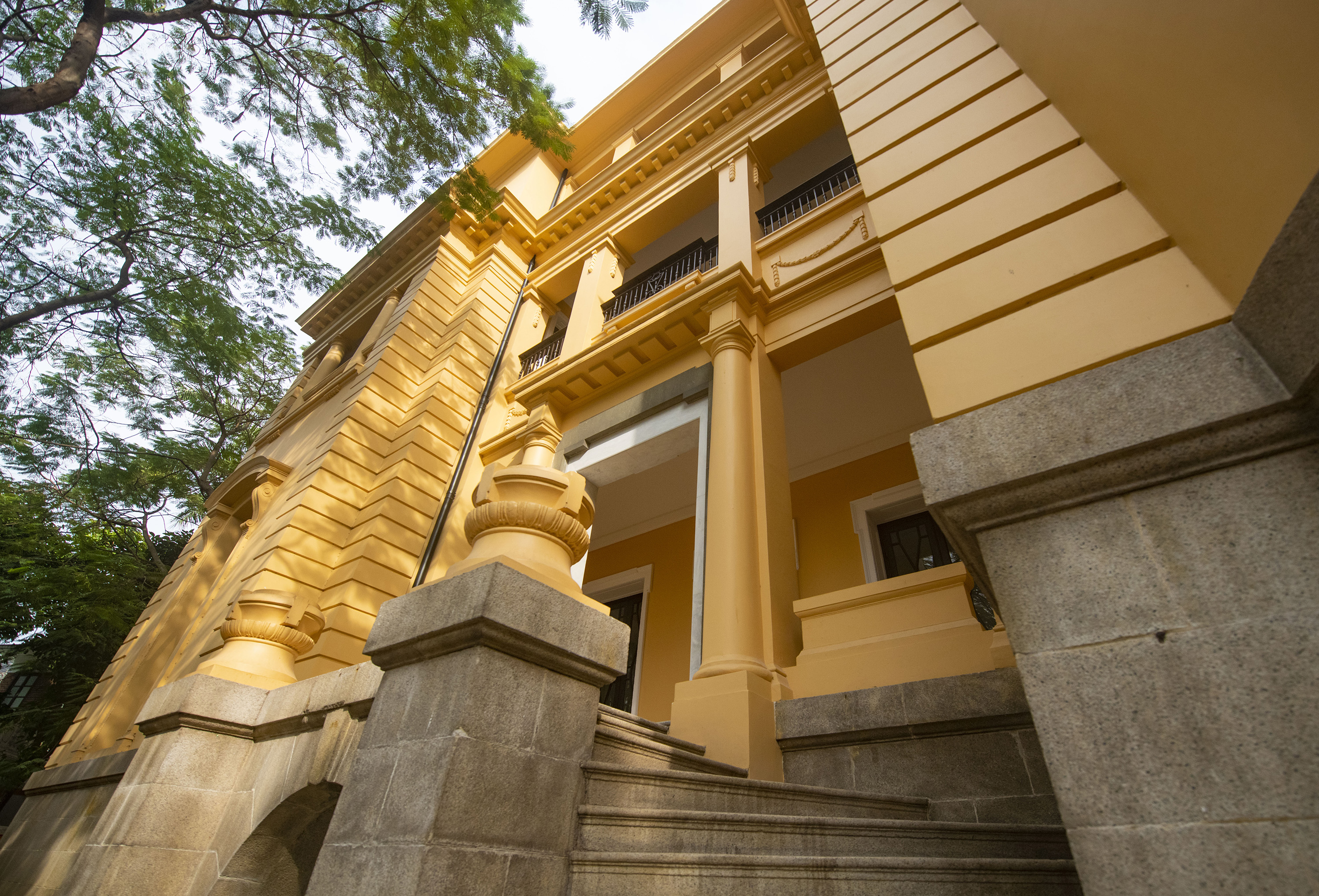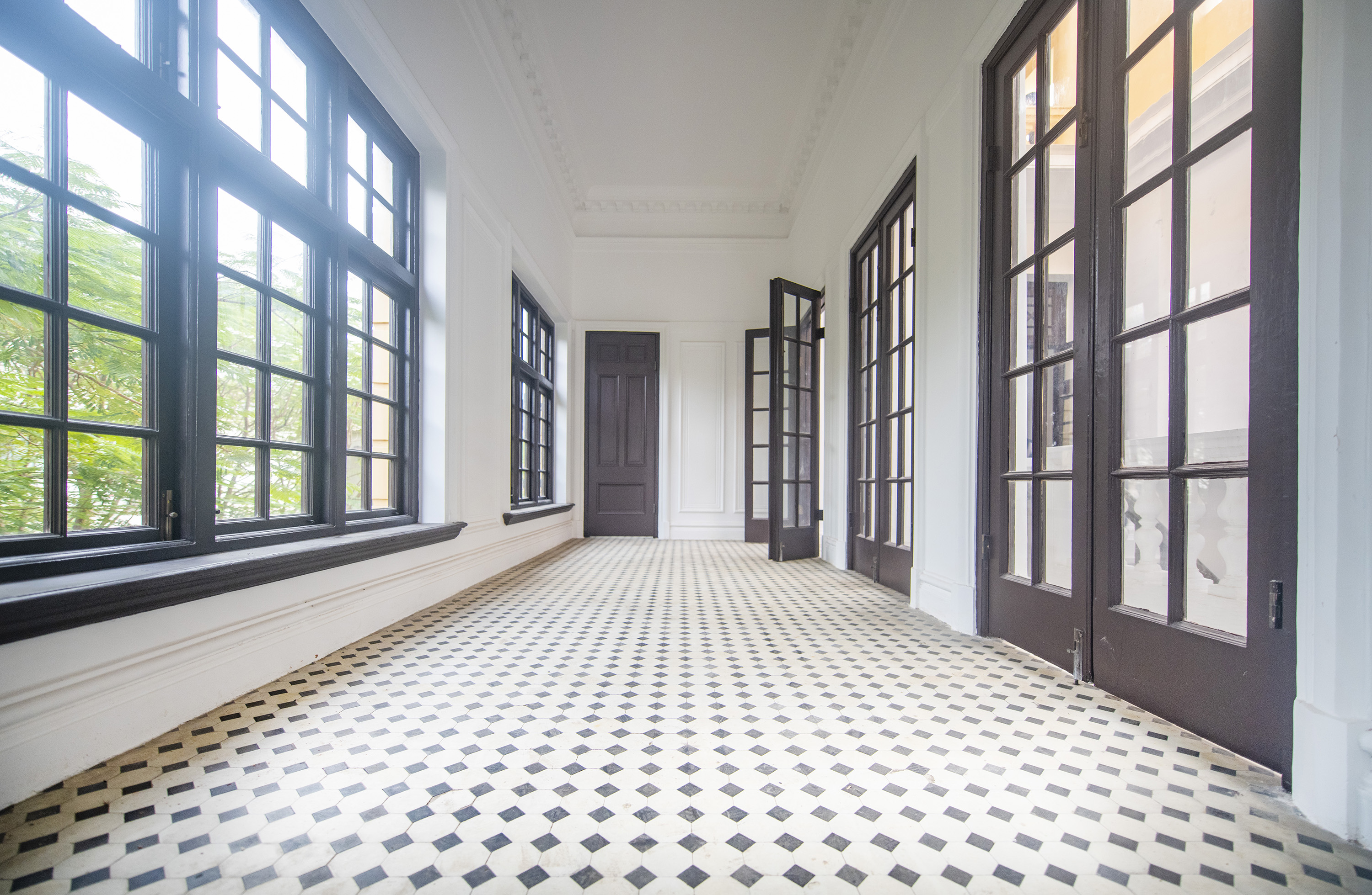 不仅是墙面,公馆立面檐口线脚(墙面与屋顶交接处)的色彩也统一使用了黄色,整个外立面呈现全黄的视觉效果,这让有些人觉得奇怪。对此,江伟辉介绍,通过对旧黑白照的观察,建筑外立面没有出现分色,而结合屋主在越南生活的经历和当地建筑的风格,也佐证了这样全黄的修缮。原先住户对建筑内部进行拆分,并进行了吊顶,此次隔墙被打掉,恢复原来的建筑空间,露出美丽的天花。