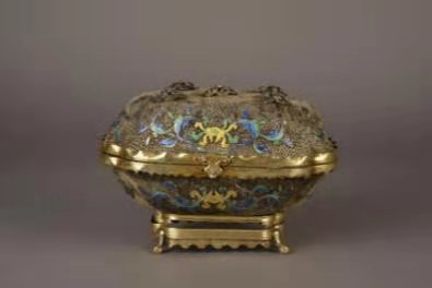 清银鎏金累丝烧珐琅番莲纹盖盒