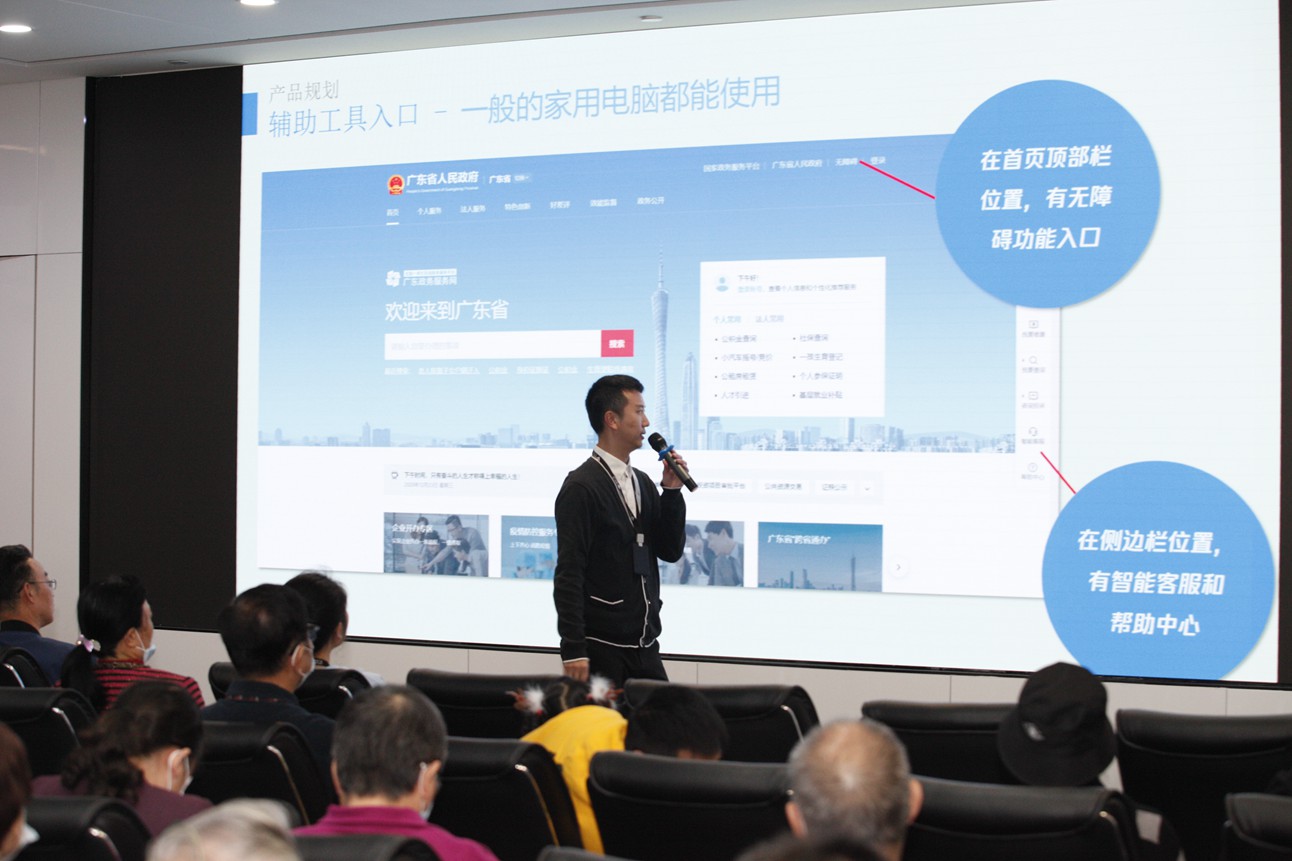开放日为老年人开设了“有温度的数字政府——‘粤系列’公益课堂”,由专业人员详细介绍“粤省事”和广东政务服务网等“粤系列”产品在线上线下针对老年人推出的贴心服务,手把手教老年人平台使用方法,现场倾听老年人在日常智能化服务场景中遇到的困难和诉求,积极回应建议。
