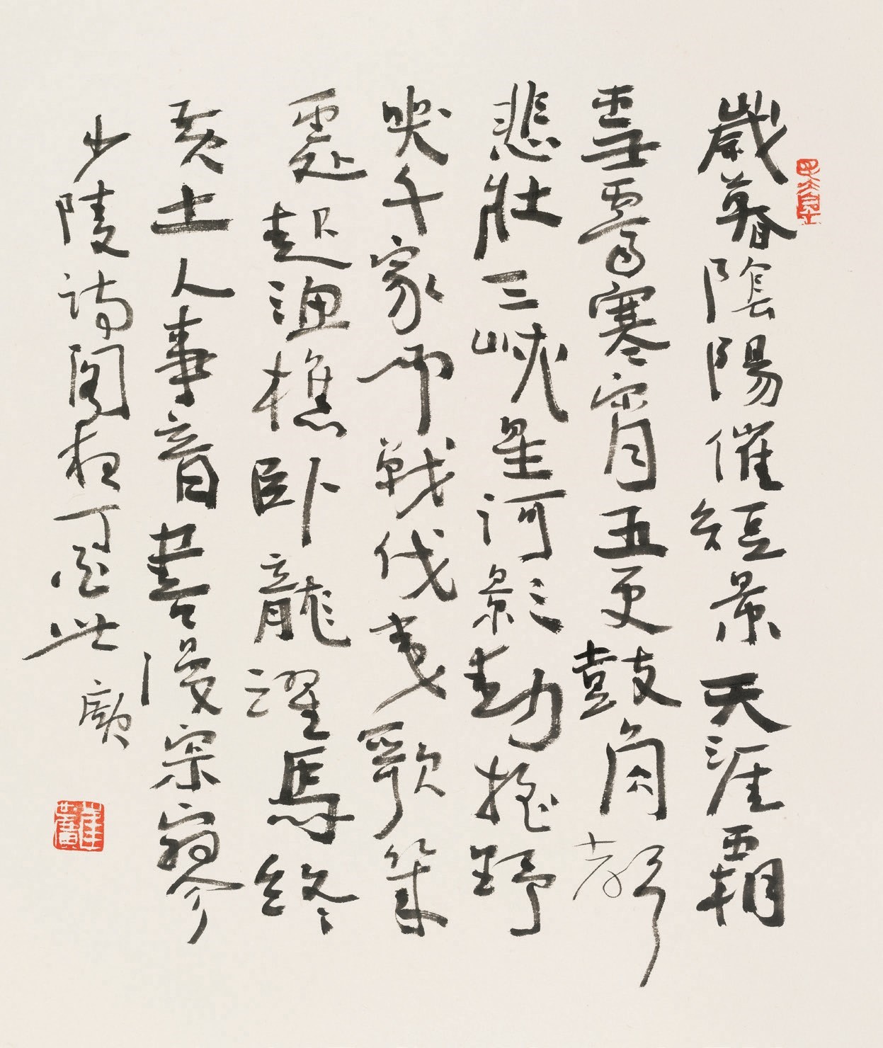 走过了大山大河,看过了繁华都市,世广 用他的诗小心守护着心底的那份宁静,在这浮华的世界中独善其身,一如他的书法,不盲从,不跟风,不投机,不媚俗。让思绪浸淫在诗和 远方,使得生命的感悟日渐厚重。