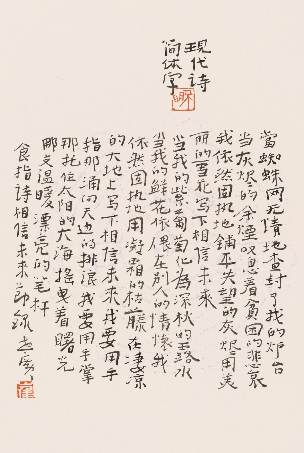 图:楷书 食指《相信未来》节录(插图翻拍)