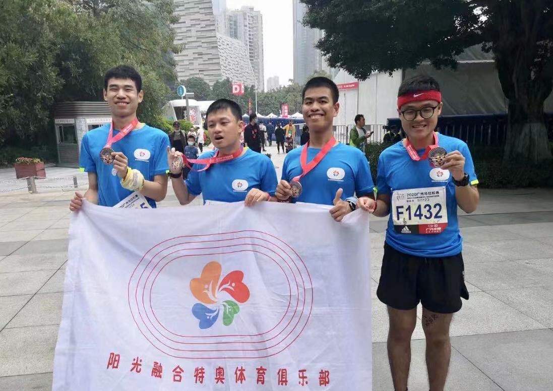 值得一提的是,本月的广州马拉松,阳光特跑团的4名“星星孩子”张以恒、王皓、吴宗泰、谭竣文在志愿者的陪伴下第一次挑战全马成功,还都跑进了6小时内,最快的谭竣文仅用时5小时零7秒,他们也成为全国第一支全程马拉松心智障碍者跑团。