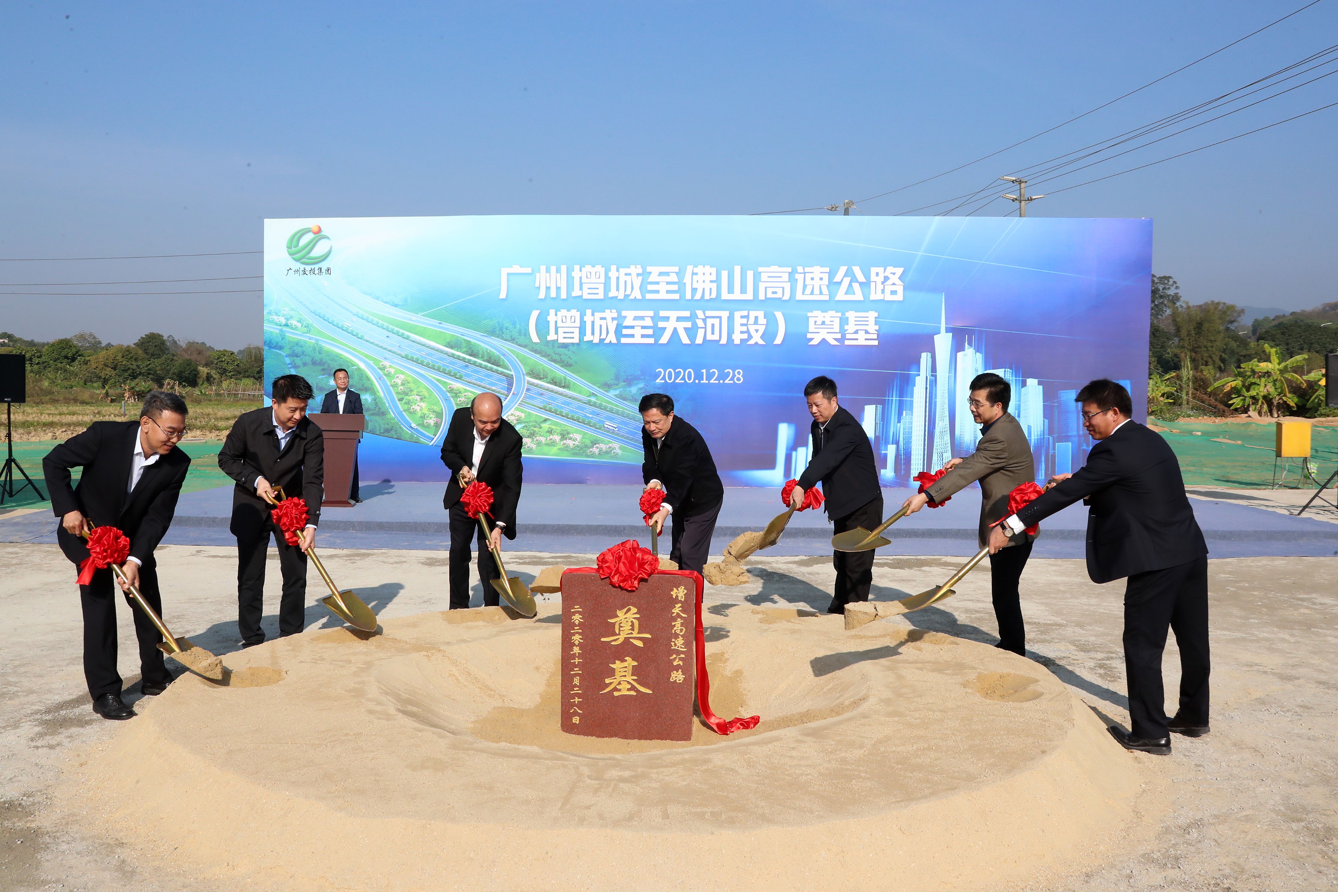 12月28日,由广州交投集团投资建设的广州增城至佛山高速公路(增城至天河段,下称增天高速)奠基现场会在增城区举行。市交通运输局、增城区及广州交投集团等单位领导嘉宾出席奠基现场会并共同为项目挥锹奠基,拉开增天高速建设序幕。