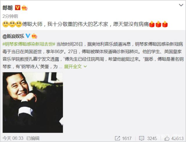 据奥地利音乐频道消息,钢琴家傅聪因感染新冠病毒于当地时间28日在英国逝世,享年86岁。