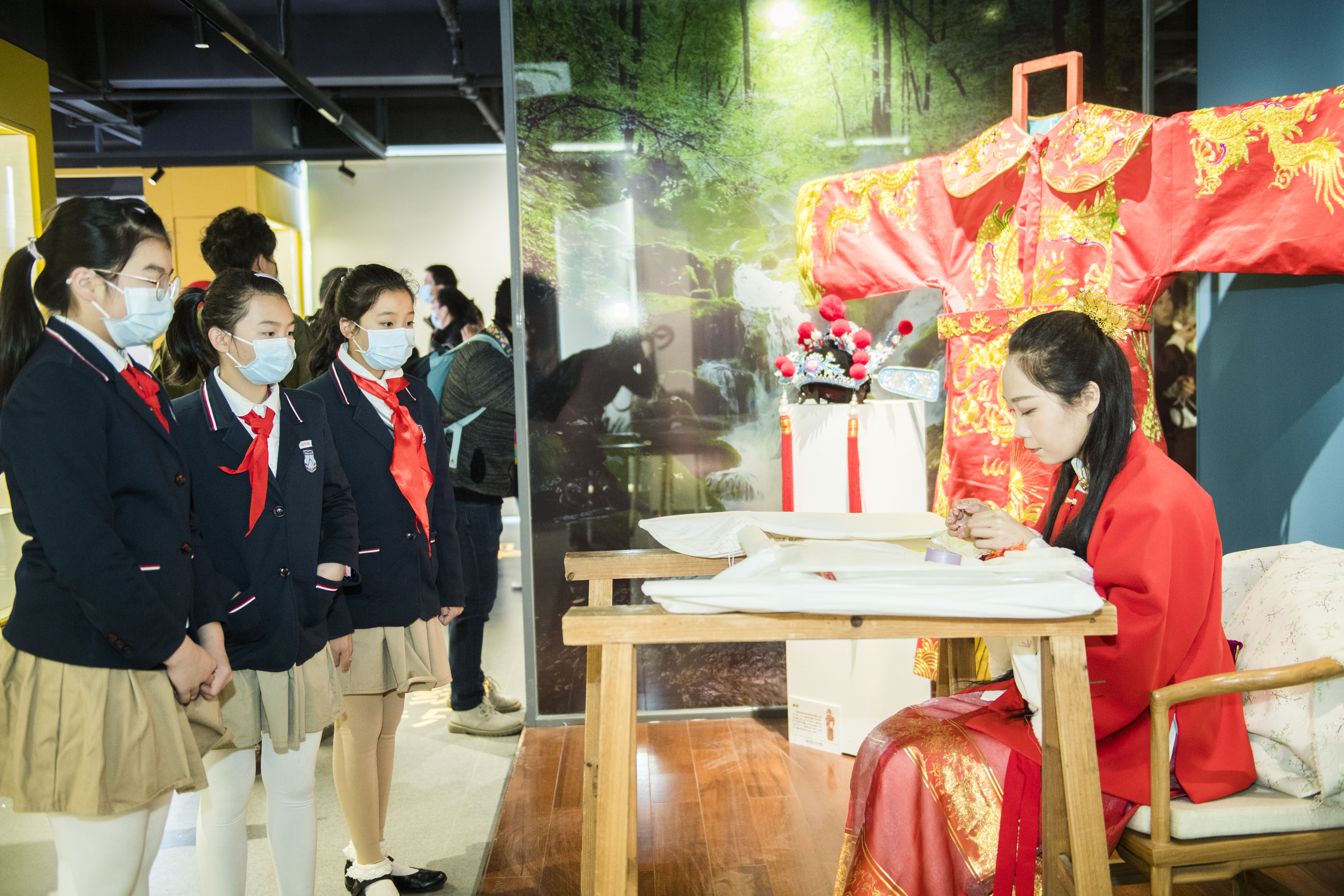学生观看刺绣展示