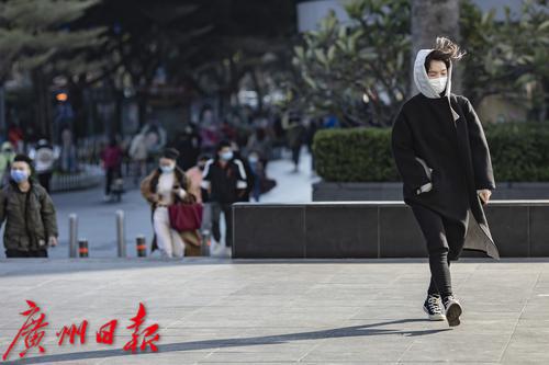 跨年寒潮来势汹汹,昨天广州最高气温还有27.5℃,让人仿佛身处夏日,今天气温骤降,12时30分,五山观测站录得的气温只有13.2℃。预计12-15时,广州各区晴间多云,气温11~14℃,吹清劲的偏北风,也不会有台明显的上升。目前广州市气象台已发布寒冷橙色预警信号,这是下半年的首次。