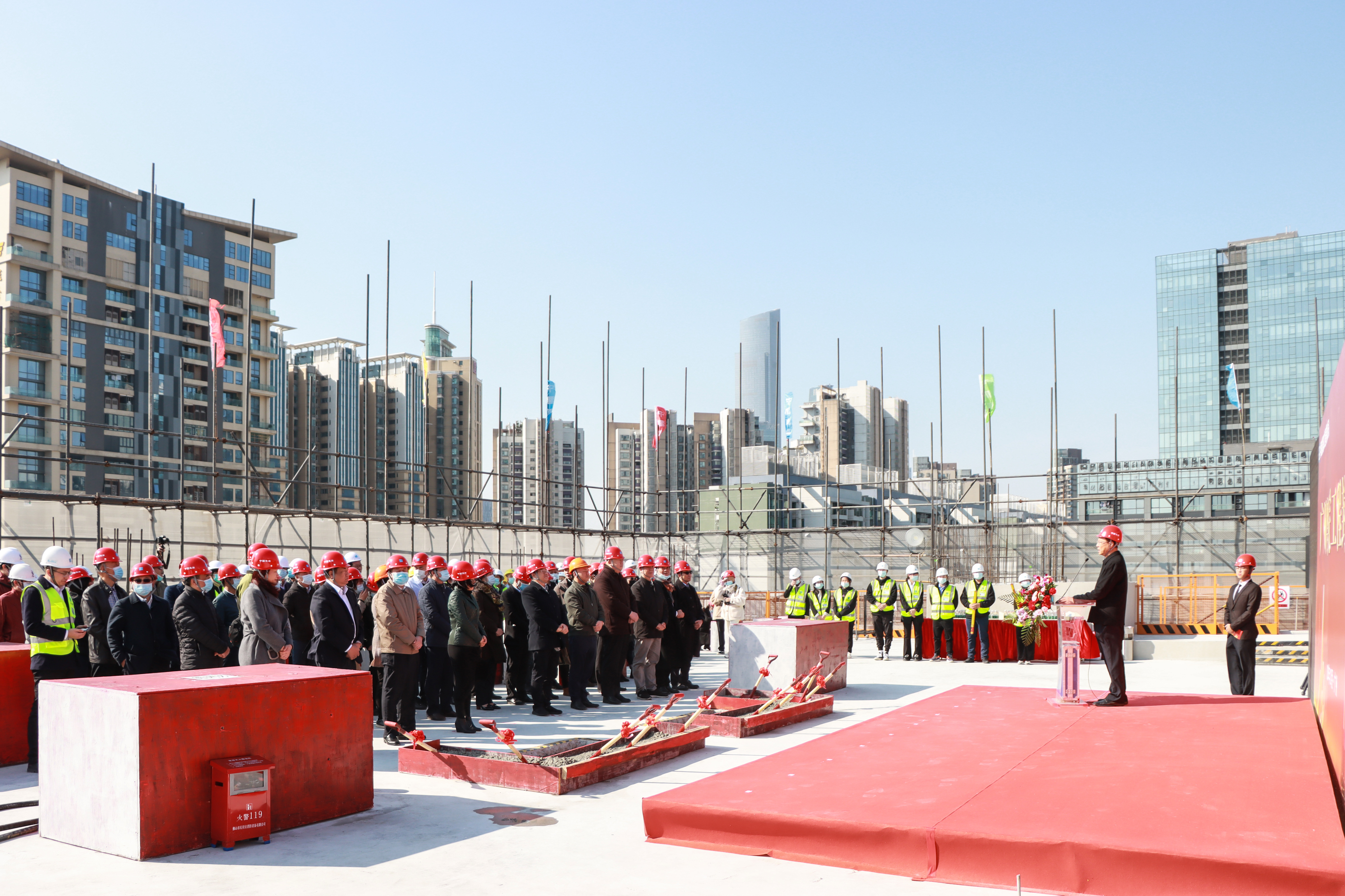 早上10点30分,广州粤剧院顶楼平台上彩旗飘扬,广州粤剧院封顶仪式在这里隆重举行。广州市人大常委会、市委宣传部、市文化广电旅游局、市重点办、冼村街道办,业主方、参建各方领导、工友代表以及著名粤剧表演艺术家等约80人出席仪式,共同见证项目开工以来最激动人心的阶段性成果。随着广州粤剧院项目浇筑最后的封顶混凝土,广州粤剧院正式封顶。