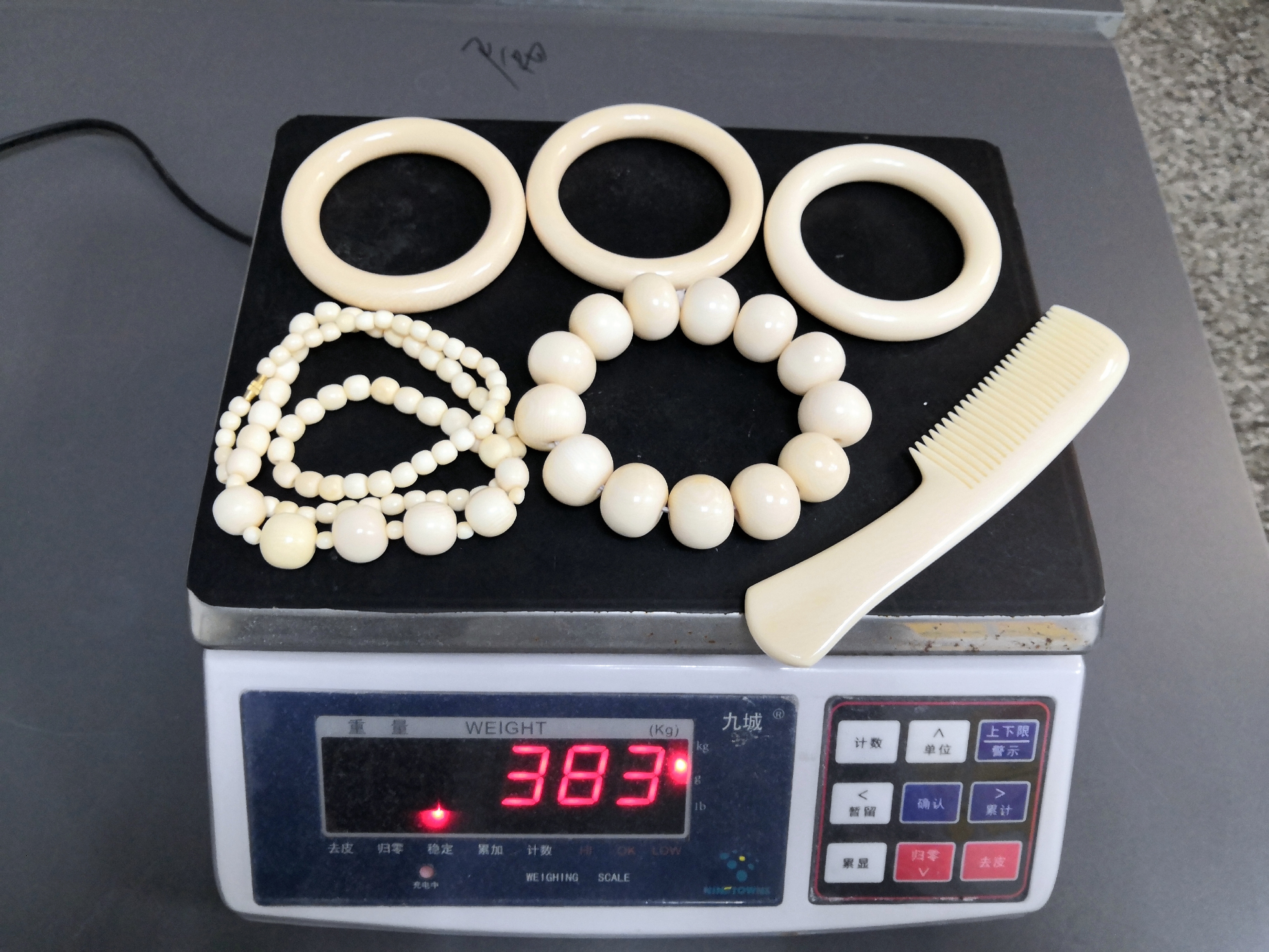 广州白云机场海关在旅检渠道查获的象牙梳子、手镯、珠串等象牙制品