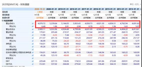 不过,也有特例。比如全球连锁商超龙头企业沃尔玛近年营收总体保持持续增长,利润改善,推动其股价和市值频创新高,沃尔玛最新市值为4195亿美元,折合超过2.7万亿元人民币,仍是拼多多、京东等企业的数倍。