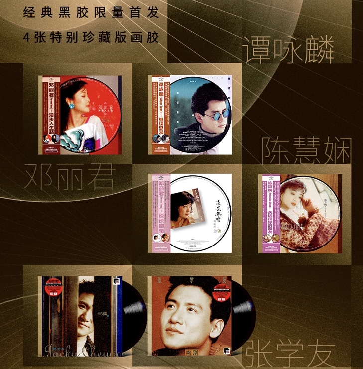 今年,宝丽金迈入50周年。在这样特殊的“半世纪”纪念之际,环球音乐首次内地发行6张宝丽金精选经典黑胶唱片,包括华语乐坛巨星张学友、谭咏麟、邓丽君、陈慧娴的畅销作品,其中《淡淡幽情》《漫步人生路》《永远是你的朋友》《继续浪漫》4张专辑特别发行限量珍藏版图案画胶,A/B双面呈现不同的经典照片,具观赏性与收藏纪念价值。