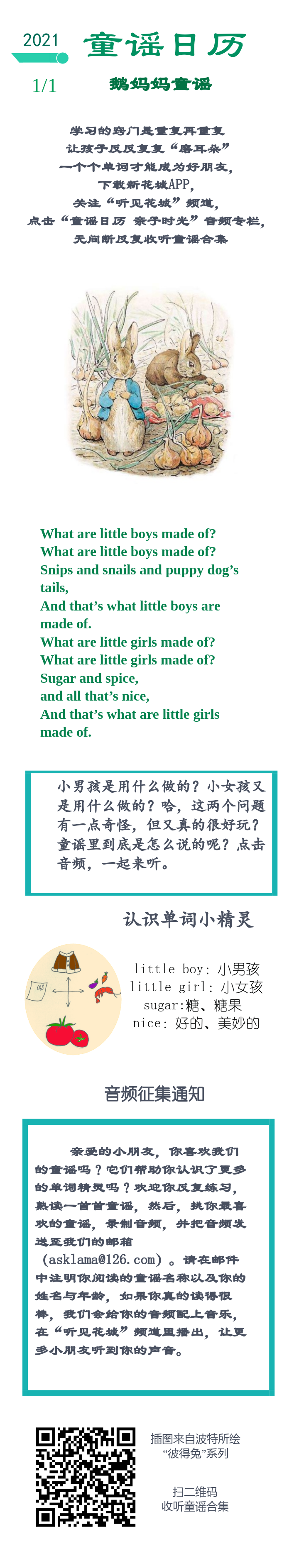 童谣日历| 鹅妈妈歌谣 what are little boys made of