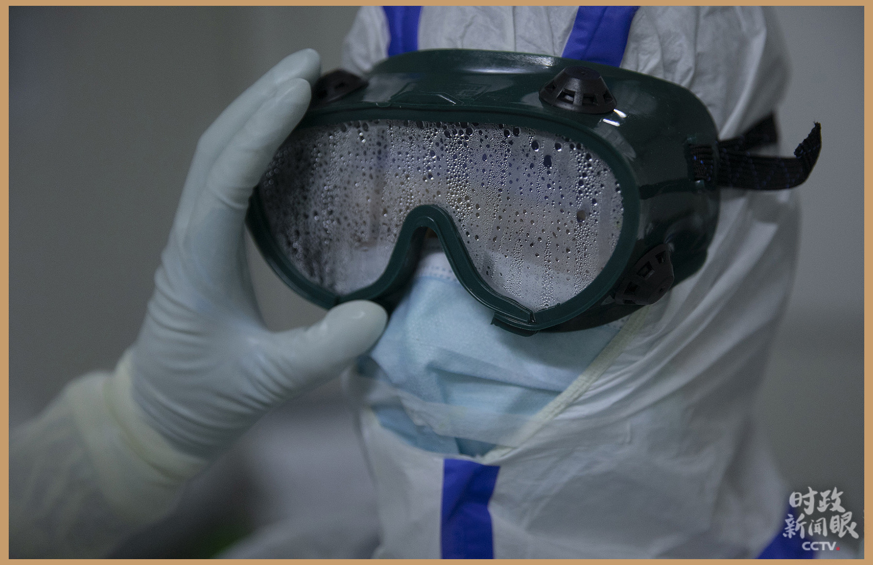 △2020年2月24日,武汉客厅方舱医院援鄂医疗队员的护目镜。在新年贺词中,习近平主席说:“一个个义无反顾的身影,一次次心手相连的接力,一幕幕感人至深的场景,生动展示了伟大抗疫精神。”