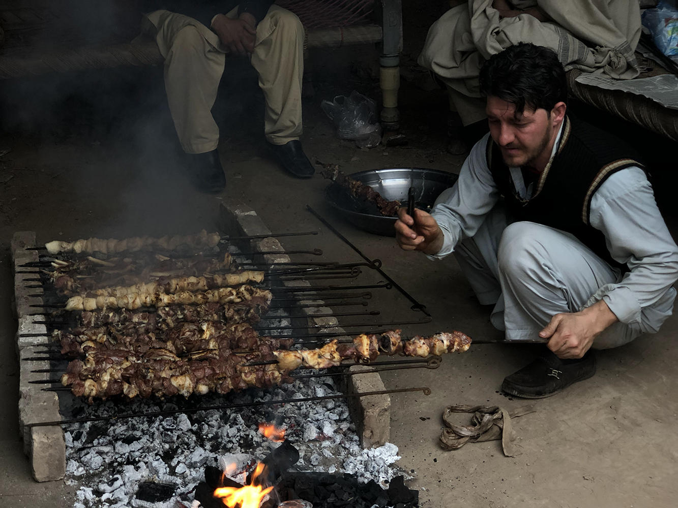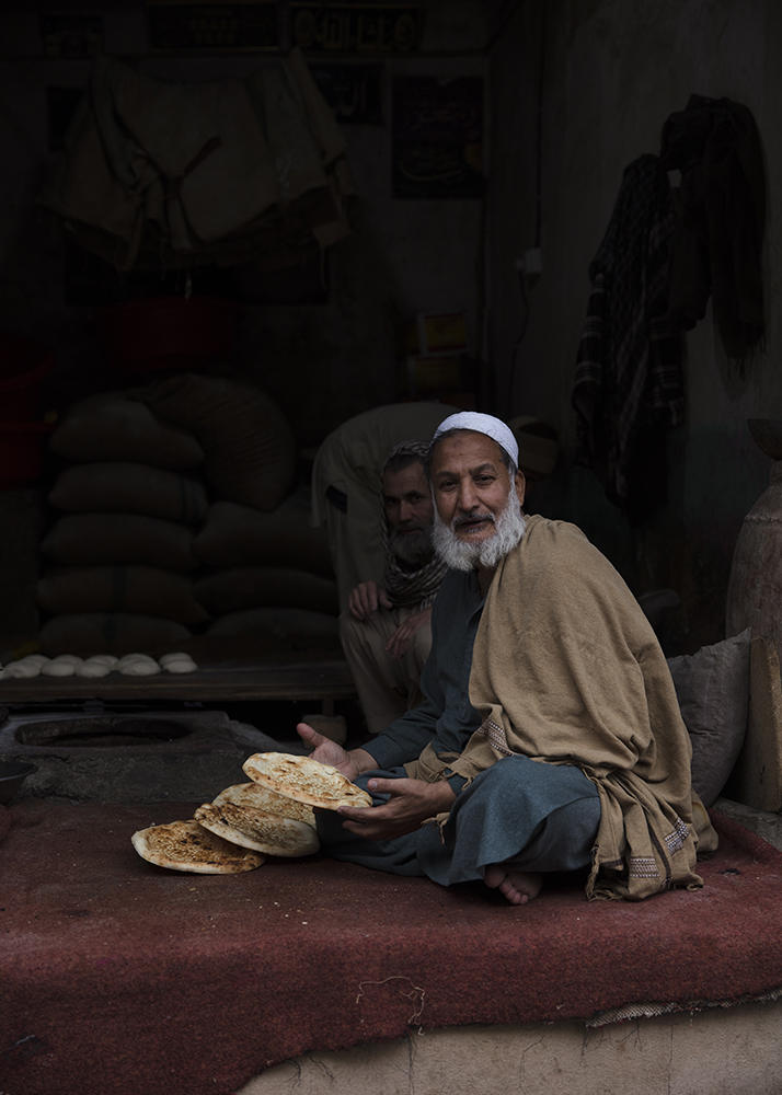 白沙瓦老城街头的烤馕铺,一个刚烤出来的馕只要0.5元。(图书插图,摄影/李英武)