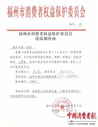 近日,福州市消委会接到消费者陈先生投诉,称其于2020年11月27日因左腿肌无力、脚面僵硬就诊于福州市第一医院疼痛科,经医生初步诊断为“盘源性疼痛”,建议他住院检查再决定是否手术。院区医生告诉他,检查完如果决定做手术,收费为2.5万元。