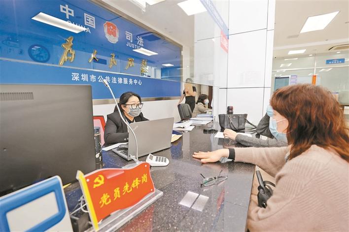 深圳市行政服务大厅法律援助专业分厅工作人员正在向市民提供法律援助。