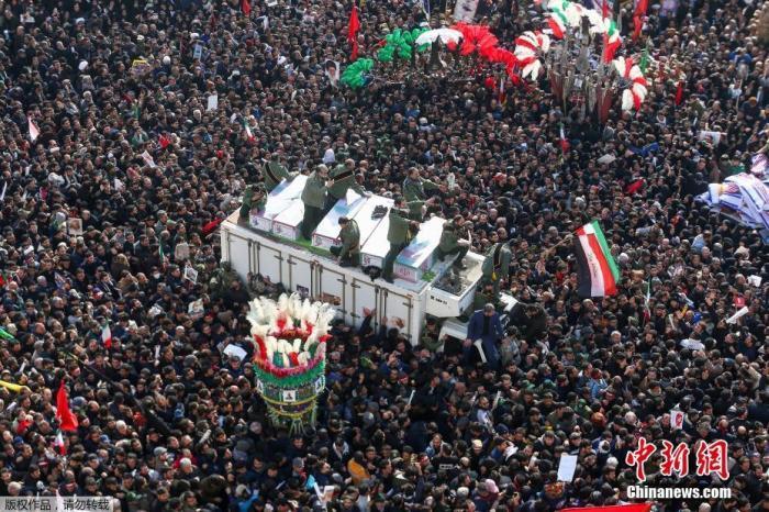 2020年1月6日,伊朗首都德黑兰,成千上万的民众走上街头送别高级将领苏莱曼尼。Nazanin Tabatabaee