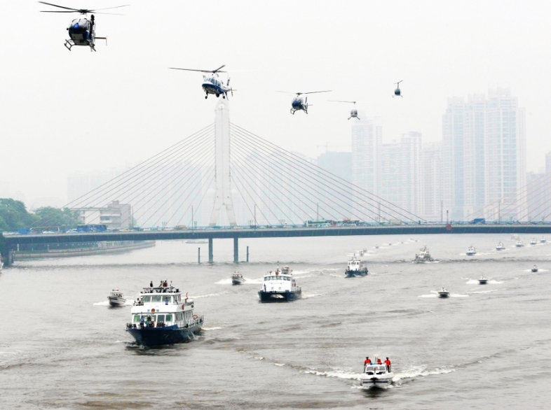 除此以外,在海心沙以南珠江水域,警方将于当天上下午各组织一场水空综合演练,由水警舰艇和警航支队直升机编队协同巡航,配合精彩的水空反劫持特警索降科目演示。