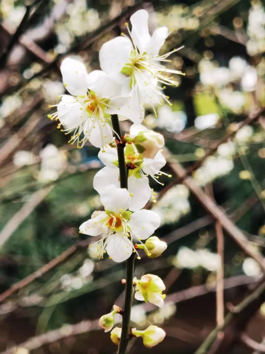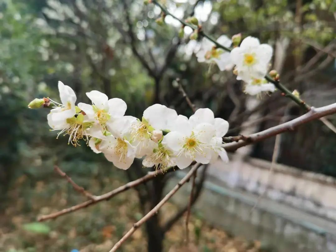 在白云湖四君子园内,种植有近60株白梅,它们聚集在空旷的湖边。梅花盛开时,咫尺外是碧波荡漾的湖水,这样的临湖梅林景观,每年都会吸引不少游客前来赏花。目前,园内的梅花已陆续绽放,将进入盛花期。