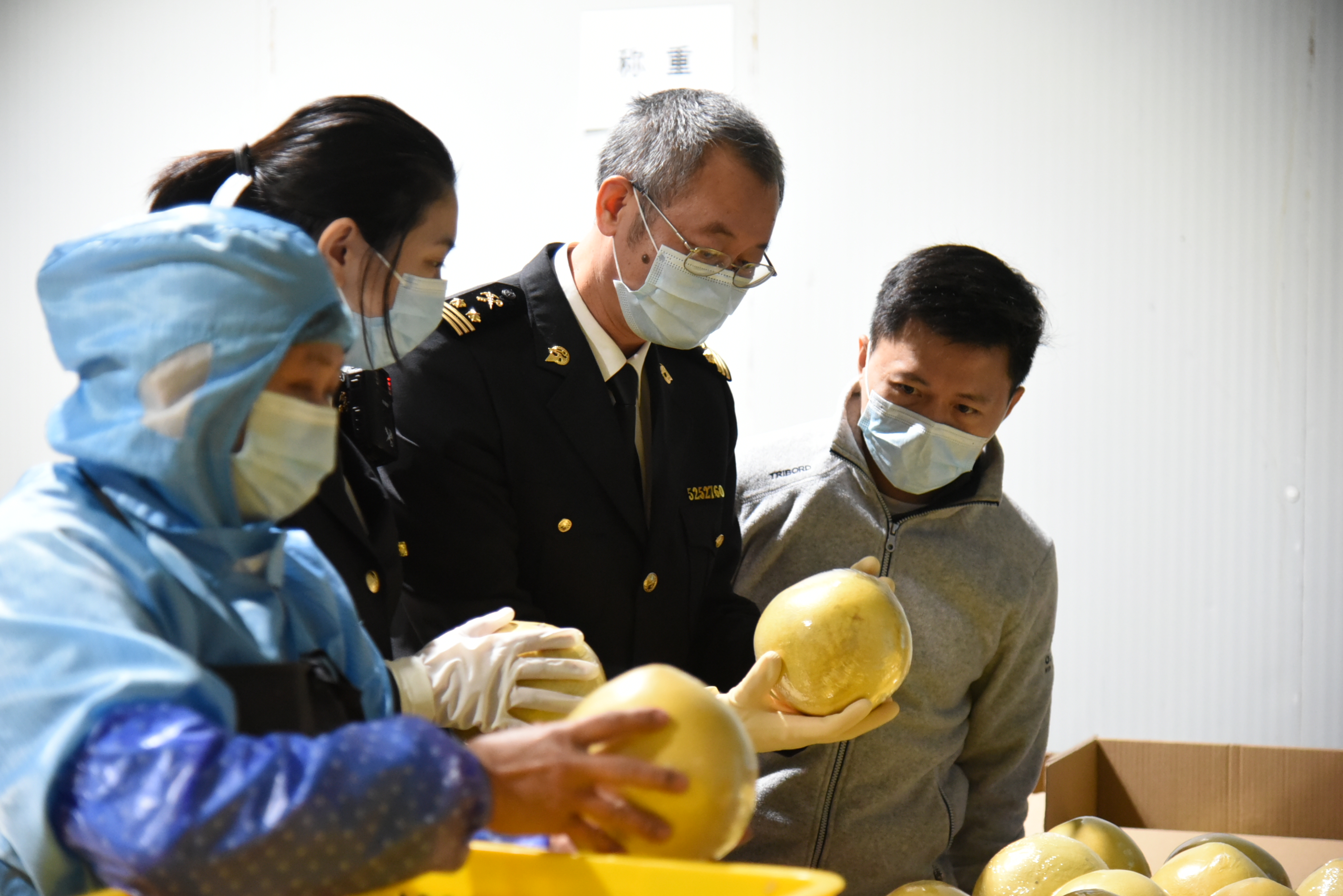 增城海关关员检查出口农产品