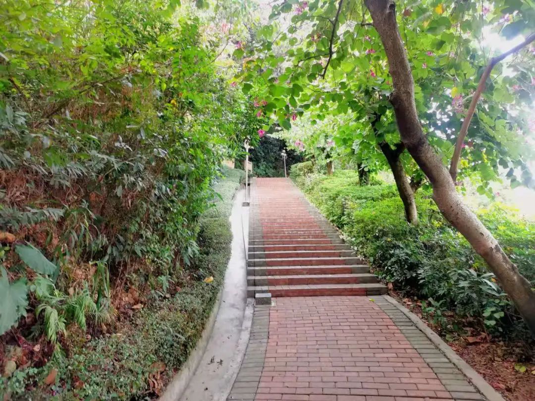 走进文园山,就是一条盘山小路,石阶较陡峭,是健步锻炼、放松心情的好去处。路边草木茂盛,尽管已经入冬,但仍是一片绿意盎然之景。