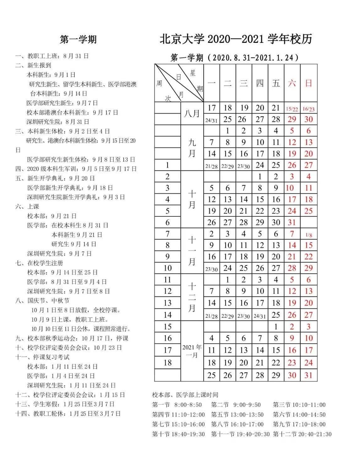 1月8日,北京大学发布通知,调整2020至2021学年校历,今年学生寒假时间改为1月25日至3月7日,比原计划延长2周,3月8日正式开学。