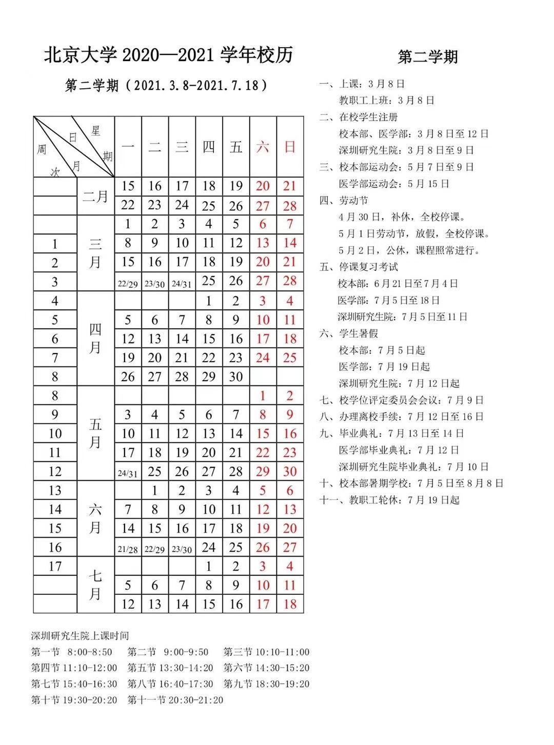 另外,根据调整后的校历,北大还对2021年劳动节及校庆安排做出调整。现将调整后的2021年部分节假日安排如下: