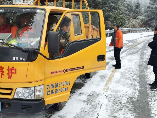 冰雪下的大山里还有一道特别的风景,为做好寒潮雨雪天气的应对工作,确保交通安全,白石镇第一时间组织人员冒着风雪前往结冰路段开展撒盐除冰防滑作业,并在路上设置道路结冰提示牌提示过往车辆注意安全。