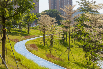 水声涌碧道建设中,充分融合了海绵城市的建设理念,创造出集收集、净化、造景功能于一体的“雨水花园”。
