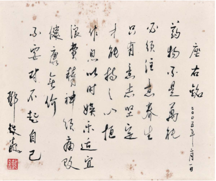 广东新南方集团董事长朱拉伊作为邓铁涛的弟子也表示,邓老是有着跨时代影响的中医大师,铁涛理想,除却在书法艺术上的呈现,正以精神传承的方式为健康中国做贡献,“邓老有‘大医’的精神。2003年,他将治病救人的方子嘱托于我,生产邓老凉茶,生产助力养生的系列产品,造福于人民。”