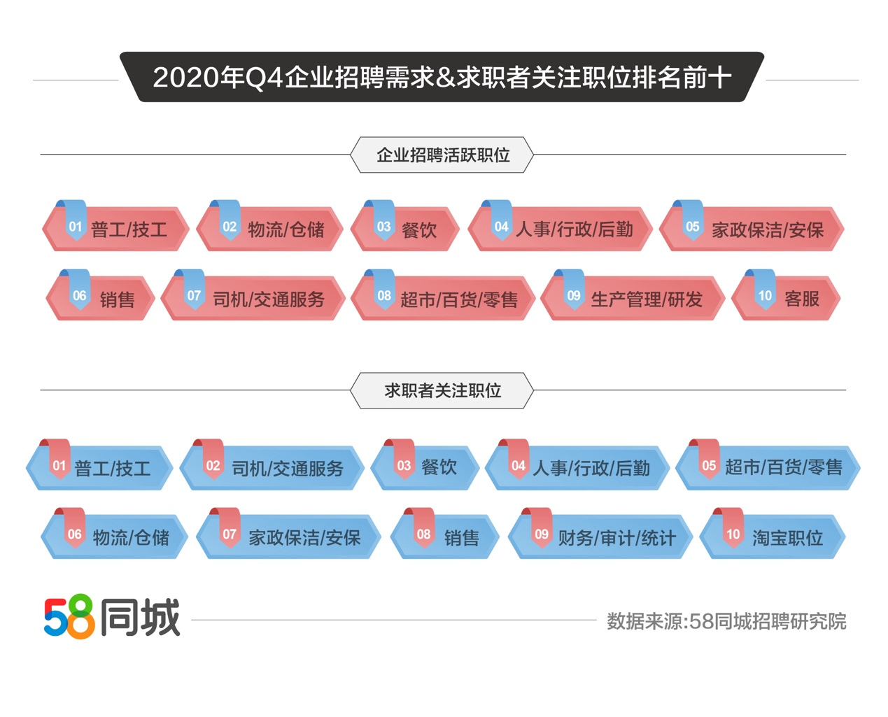近日,58同城发布2020年第四季度人才流动大数据显示,新一线城市招聘需求高,一线城市求职活跃度排名靠前;普工/技工类岗位供求两旺,长三角城市群求职相对活跃;司机/交通运输岗位月薪达到10536元,人事/行政职位月薪增长22.58%,上海企业平均支付月薪10386元,排名各城市之首。