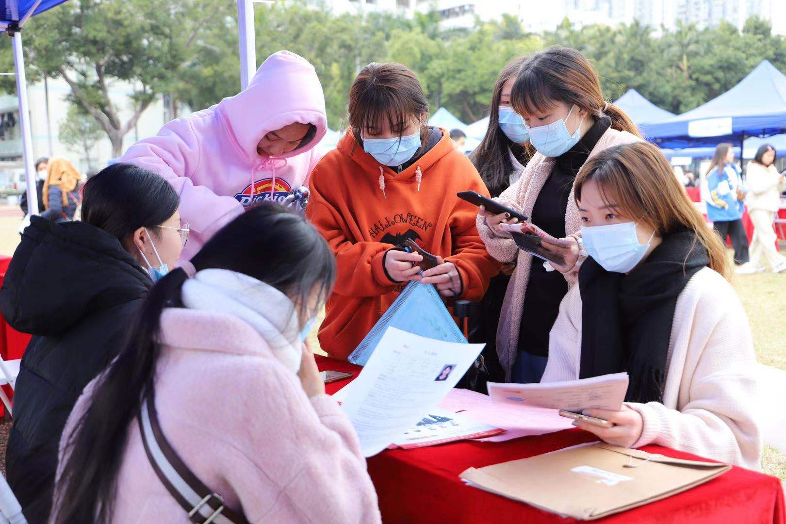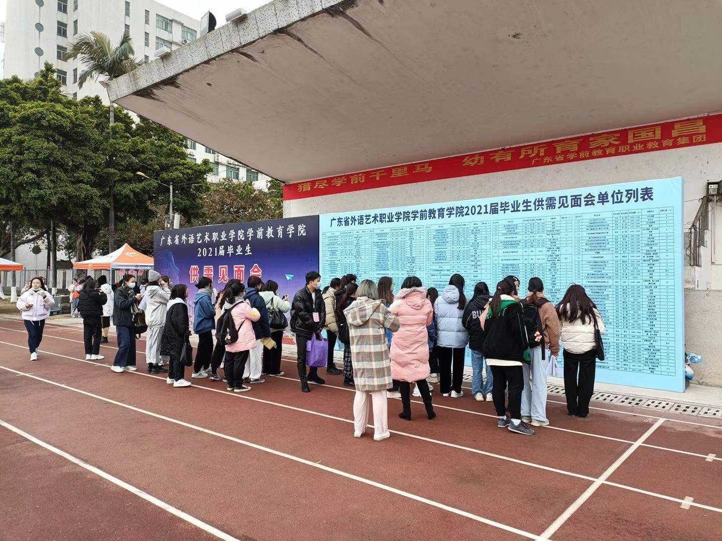 1月11日下午,广东省2021届毕业生学前教育专场招聘会在广东省外语艺术职业学院(以下简称广外艺)燕岭校区运动场举行。当日寒风料峭,但现场气氛浓烈,700余名应届专科、本科毕业生参加了招聘会。据统计,人均投递简历3份,过半毕业生现场与企业达成初步就业意愿。