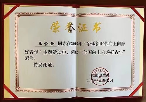 这些年,王金云先后获得“深圳市十大杰出青年”“广东省十大杰出青年”“全国普法先进个人”等50多项荣誉称号。2019年年4月30日,获选2019年“全国向上向善好青年”的王金云受邀参加了北京纪念五四运动100周年大会,在现场聆听了习近平总书记重要讲话。“我自己就像一个火苗,点燃了一团火。只不过是我走在台前而已。”今年疫情期间,王金云的任务格外繁重。疫情期间,很多青年找不到工作,也不能外出,王金云暂时接纳他们,提供住处。他利用公司投资的项目粤青年公寓(客栈)、圳能量青年之家、蕲创空间等已免费为20多名“重点青年”提供了过渡住宿服务。