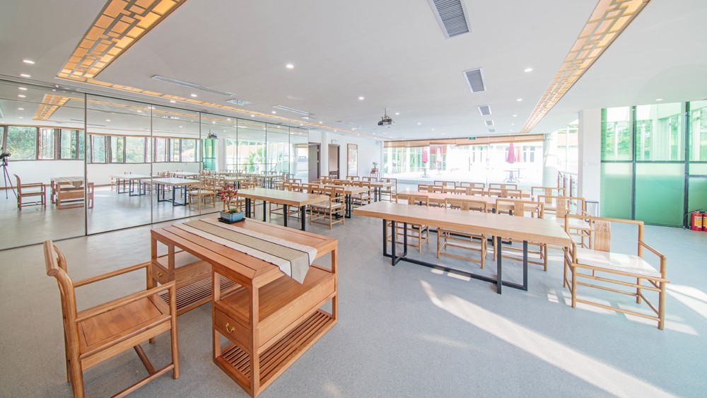 天河艺苑二楼沙龙讲座区古色古香的设计让人感受到传统文化的魅力。