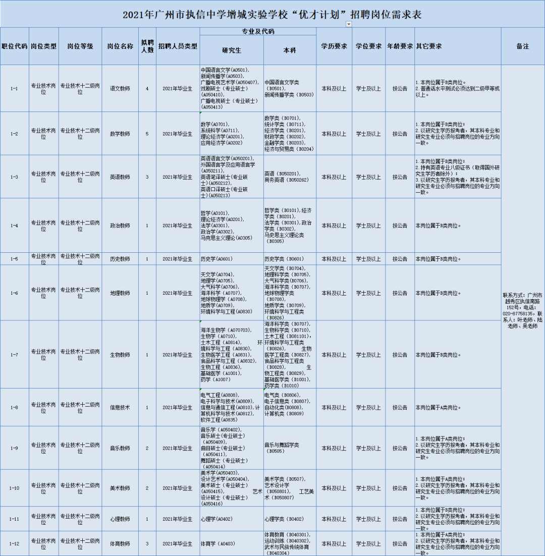 今日,记者获悉,广州市执信中学增城实验学校广州市增城区广附实验小学正在招人。广州市执信中学增城实验学校招聘教师25名,获聘人员为事业单位事业编制人员;广州市增城区广附实验小学专任教师4人,会计人员1人。