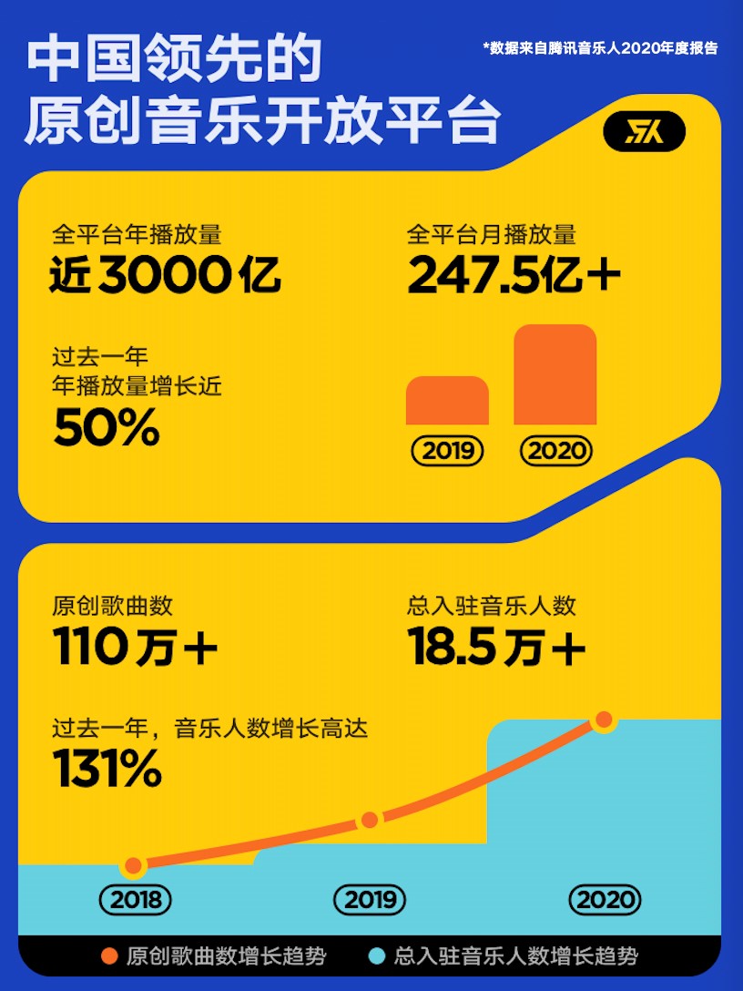 作为腾讯音乐娱乐集团旗下原创音乐平台的音乐人服务中台,腾讯音乐人在技术的加持下不断进行全方位的平台功能升级,并通过收入扶持、曝光扶持及推进行业良性发展三大核心举措,全面加持原创音乐人发展。