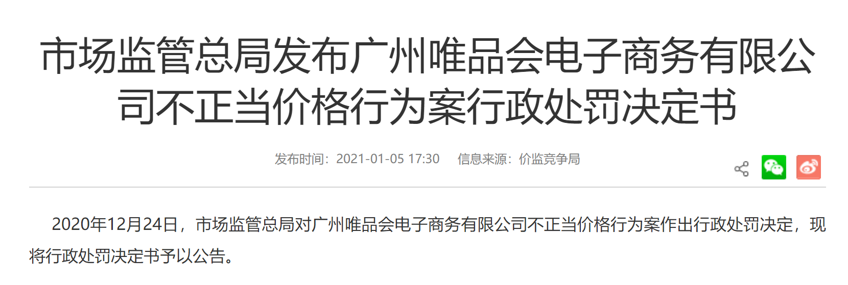 当时,唯品会方面公开回应已收到行政处罚通知,将按照监管部门要求及相关法律法规的规定,对相关问题进行全面整改。