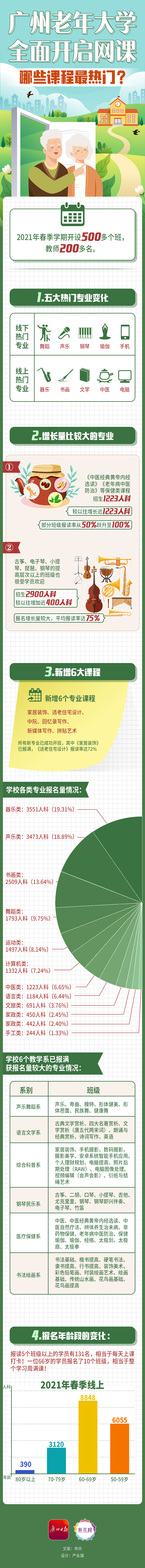 与往年线下课程相比,开启“网课”后老年大学首次招生还能“火爆如昨”吗?以往热门的课程表现如何?又有哪些课程在进行网络教学后变“香”了?广州日报盘点新学年广州老年干部大学、广州老年大学报名情况,为你解读网课时代的老年大学,哪些课程“最香”!