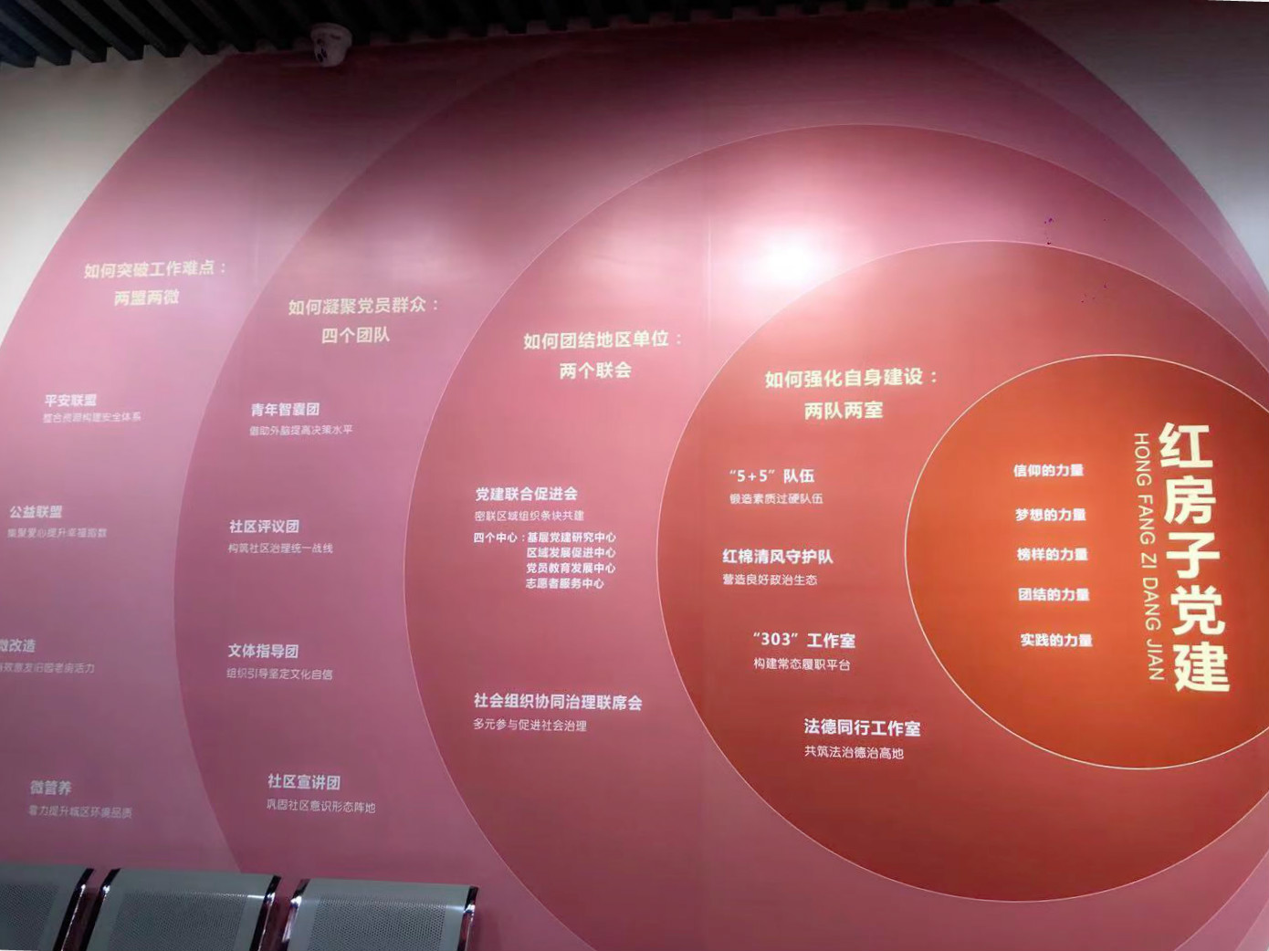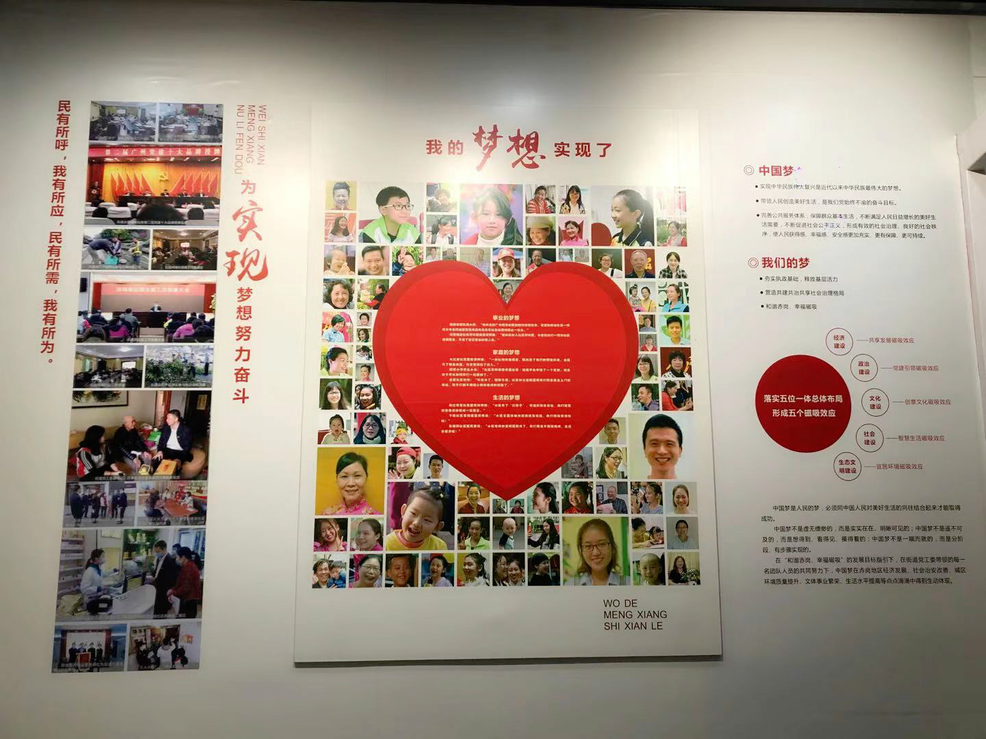“红房子”中,大幅“我的梦想实现了”海报,展示社区居民梦想实现的张张笑脸。