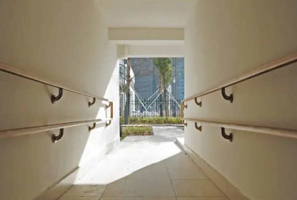 幼儿园入口处设计了“大树天地”特色空间——一株小树从架空连廊挖开的圆洞中穿过,孩子们可在树下自由玩耍,也能通过树的变化感知四季轮转。叶俊龙介绍,这一设计还包含了孩子们与小树共成长的寓意。