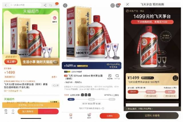 ▲多个电商平台发售1499元飞天茅台。