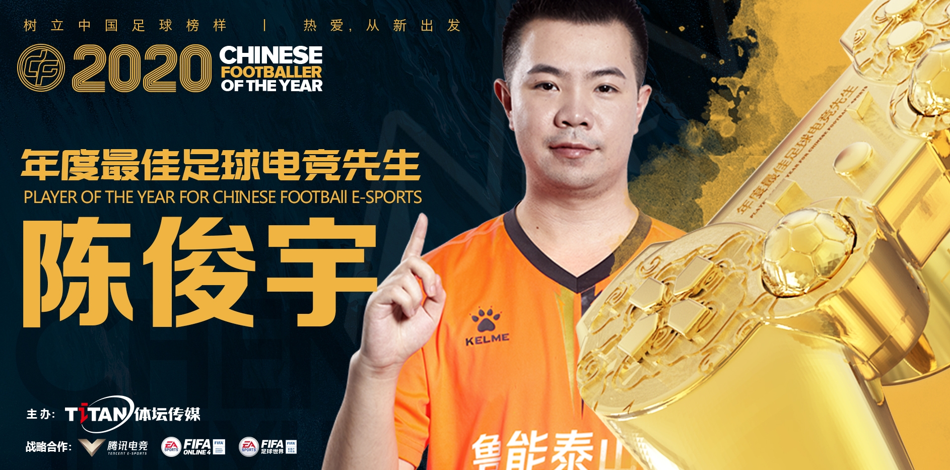陈俊宇获得年度最佳足球电竞先生的称号 。