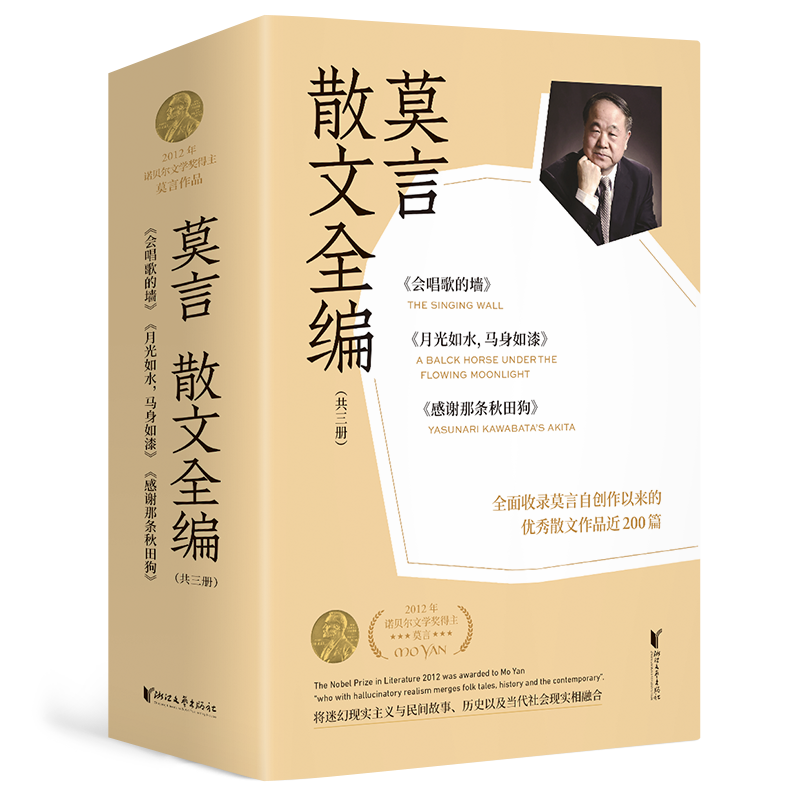 莫言的散文全编包括:《会唱歌的墙》《月光如水,马身如漆》《感谢那条秋田狗》,全面收入莫言自二十世纪八十年代至新世纪以来的散文创作近200篇。