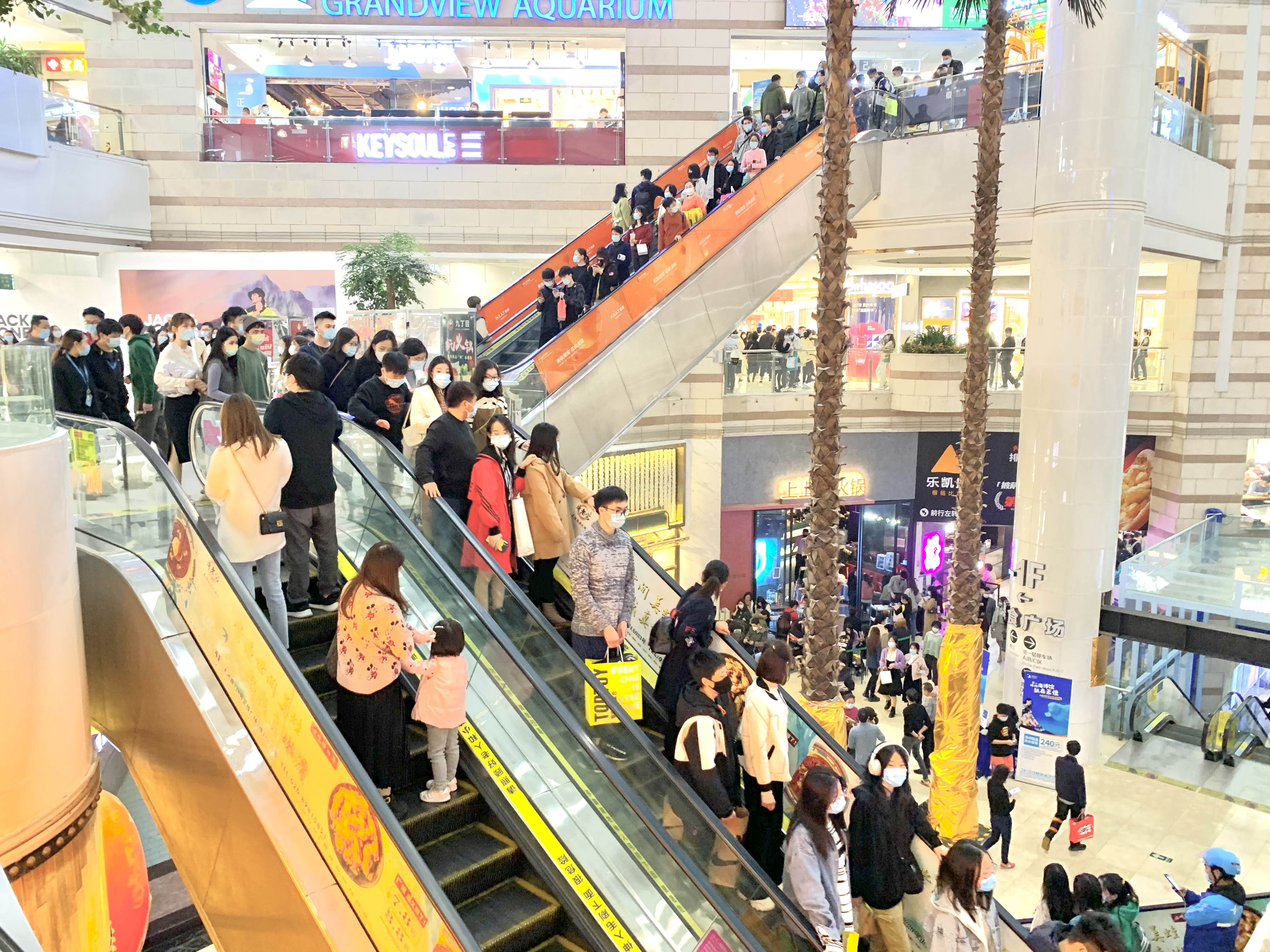 周末正佳广场内的客流迎来高峰“国内零售业作为消费先导产业,也迎来重要的发展机遇。在数字化的推动下,国内新的零售生态开始重构,高效率、高品质零售加速发展。其中,线上玩法赋能线下商圈零售企业,不仅点燃了大家‘云逛街’的热情,也通过线上下单、到店服务等创新业态,带动商圈消费持续升温。”天河路商会会长、正佳集团副董事长兼首席执行官谢萌说。