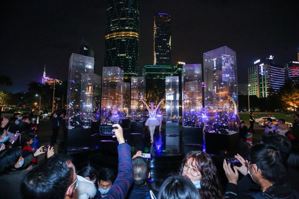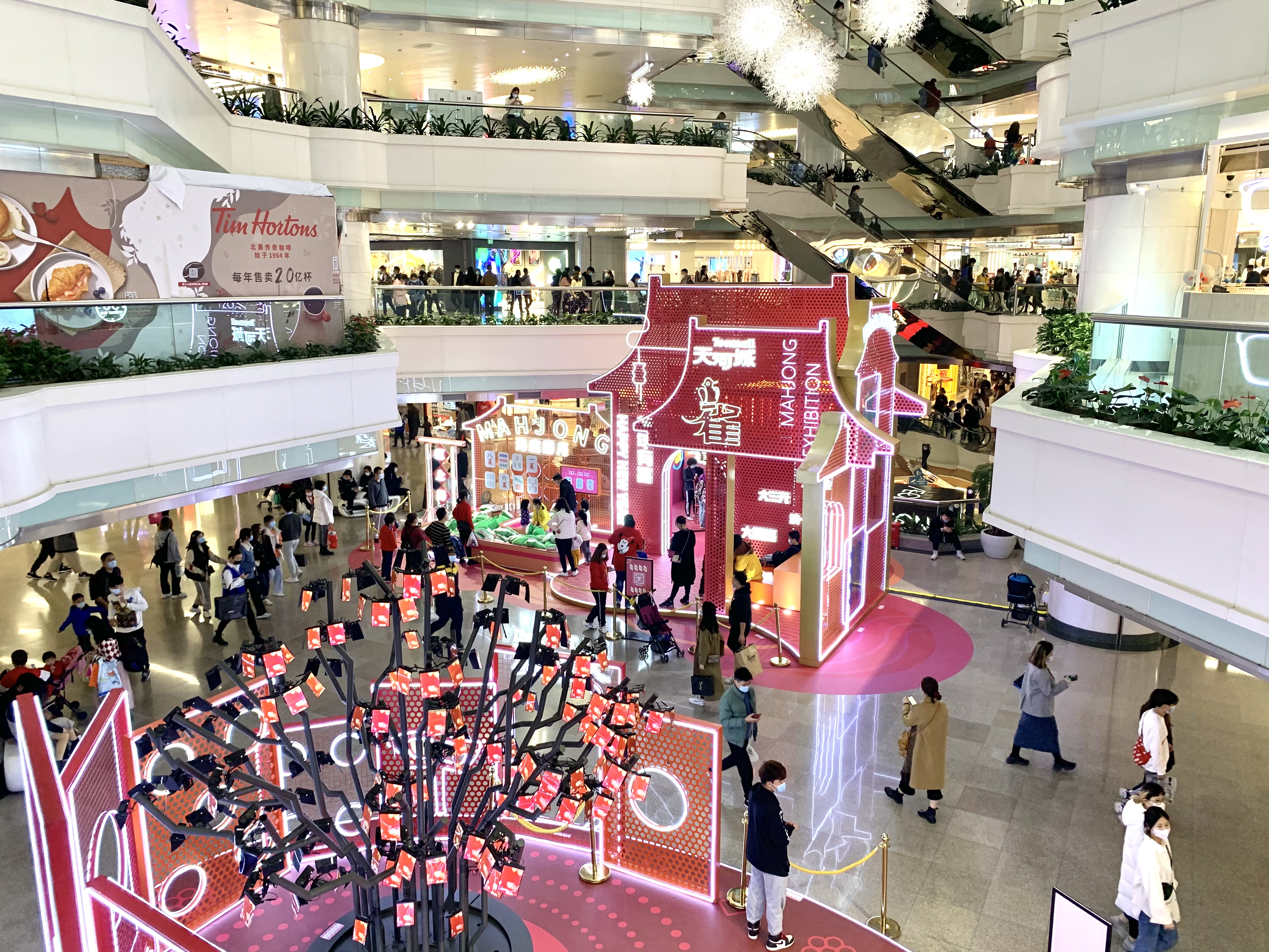 在天河城,新年灯饰也已经完成搭建,现场打造了一座时尚酷炫的“麻将乐园”,展出全国首个潮玩国粹展,靓丽的灯光,照亮了人们张张笑脸。
