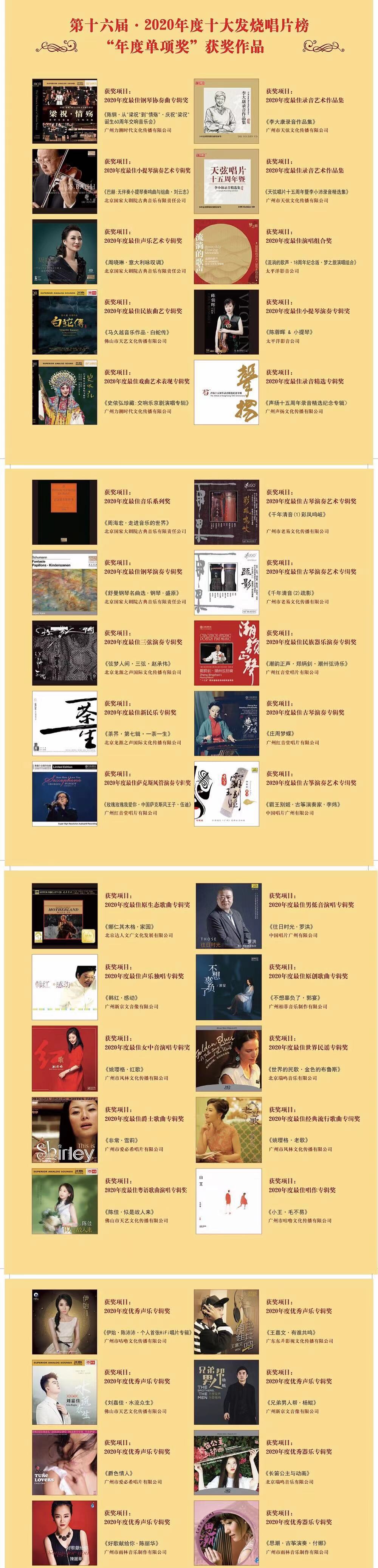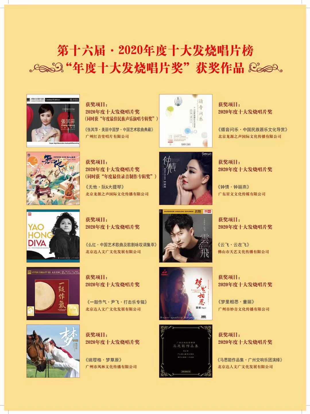 1.第十六届·2020年度十大发烧唱片榜“年度十大发烧唱片奖”专辑作品(共10个)